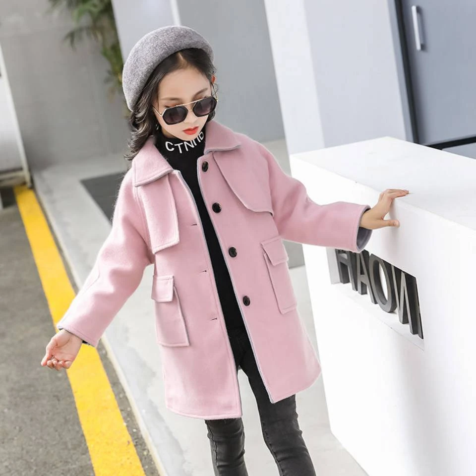 Abrigos informales para niñas de Color rosa, ropa de otoño e invierno, abrigo de lana, chaquetas cálidas, prendas de vestir exteriores para niños de 110 160CM de altura|Chaquetas y abrigos| - AliExpress