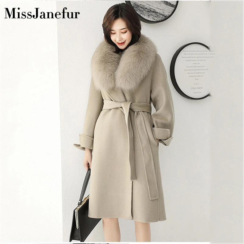 Otoño/Invierno nuevas mujeres Casual mezcla de lana gabardina abrigo de Cachemira de gran tamaño abrigos cárdigan largo abrigo con cinturón - AliExpress Ropa de mujer