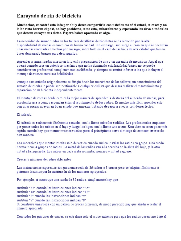 Enrayado de Rin de Bicicleta | PDF | Engranaje | Piano