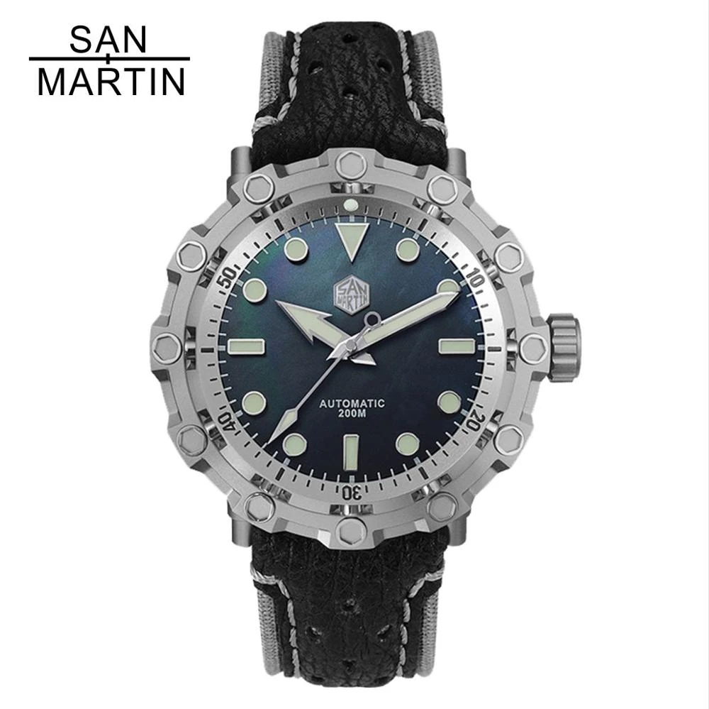 Reloj de pulsera San Martin SW200 Mov't Titanium diseño Original limitado para hombre, cristal de zafiro, 20bar, esfera de fregona, correa de cuero de tiburón|Relojes mecánicos| - AliExpress