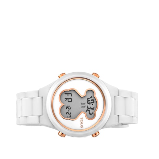 Reloj D-Bear Digital con correa de silicona blanca | TOUS