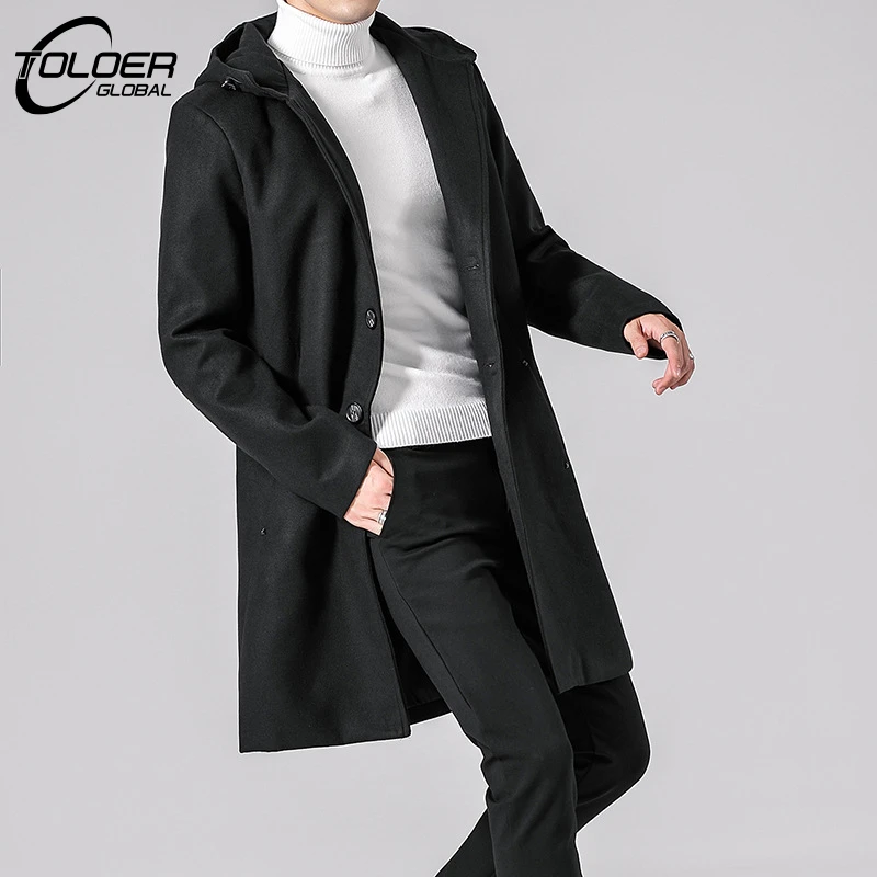 Chaqueta de lana con capucha para hombre, abrigo largo a prueba de viento, mezclas de lana gruesas e informales, entalladas, gabardina de un solo pecho, invierno y otoño|Lana y mezclas| - AliExpress