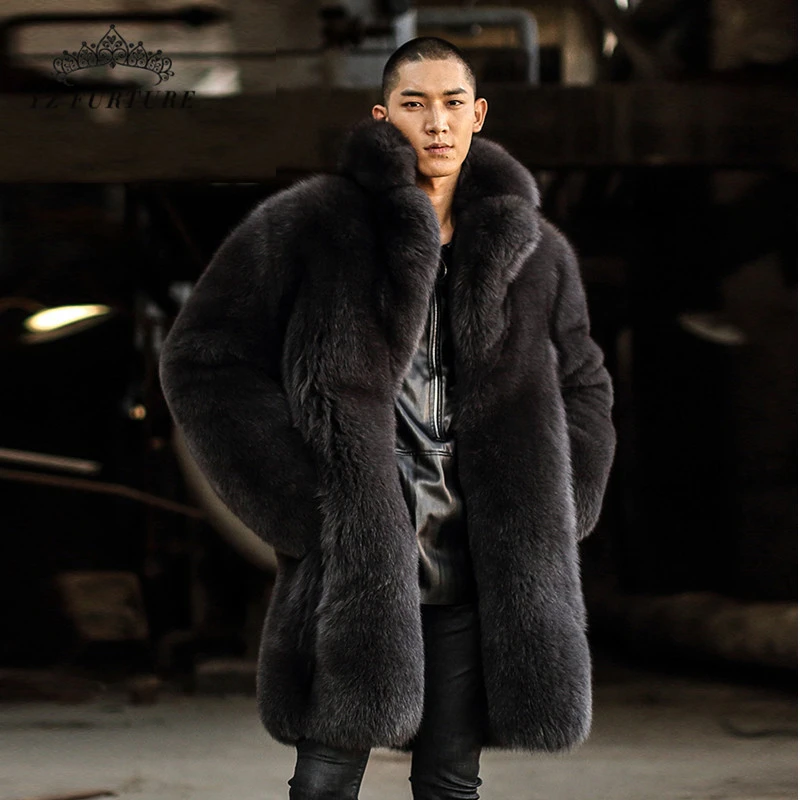 Abrigo de piel de zorro Real para hombre, chaqueta gruesa y cálida de piel de zorro Natural de 90 CM de largo, prendas de vestir auténticas, FM 003| Abrigos de cuero genuino| - AliExpress