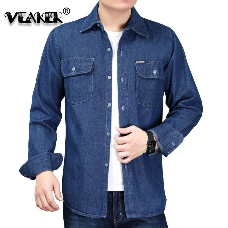 Camisa vaquera de algodón para hombre, camisa de manga larga ajustada a la moda, lavado elegante, Tops ajustados de talla grande 4XL, nueva de otoño| Camisas informales| - AliExpress