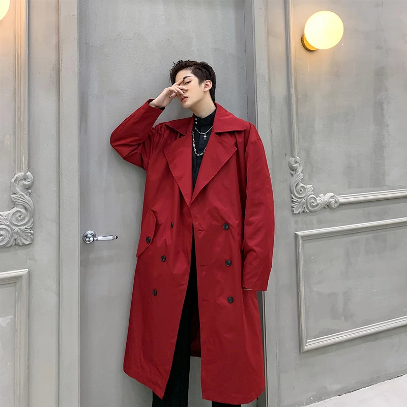 Gabardina informal Estilo Vintage para hombre y mujer, chaqueta roja estilo Hip Hop, rompevientos, gabardina holgada de doble botonadura, Color Rojo|Zanja| - AliExpress