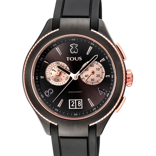 Reloj ST bicolor de acero/IP rosado con correa de Caucho negra | TOUS