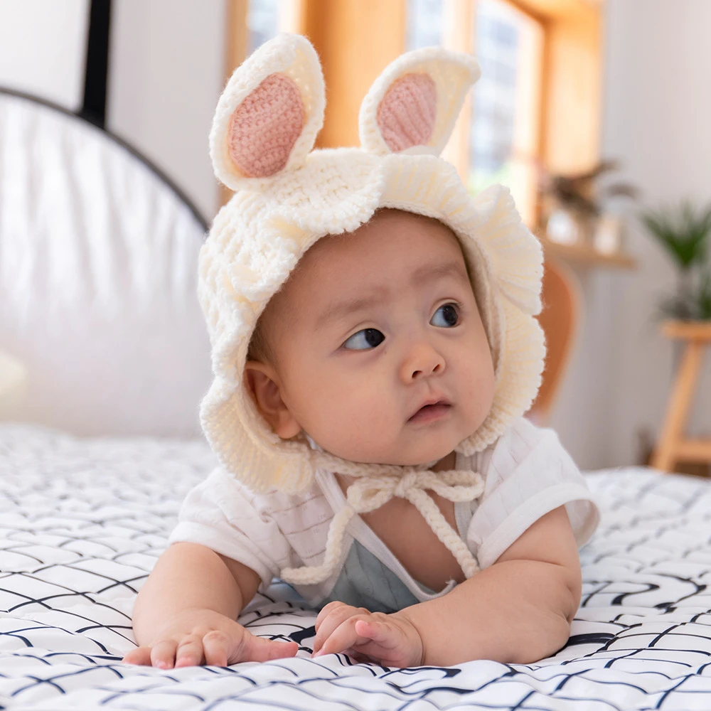 Gorros tejidos con orejas de conejo para niños y niñas, gorro de lana de punto suave y sólido de princesa para recién nacido, regalo de Corea, Invierno|Los hombres de sombrero y gorros| -