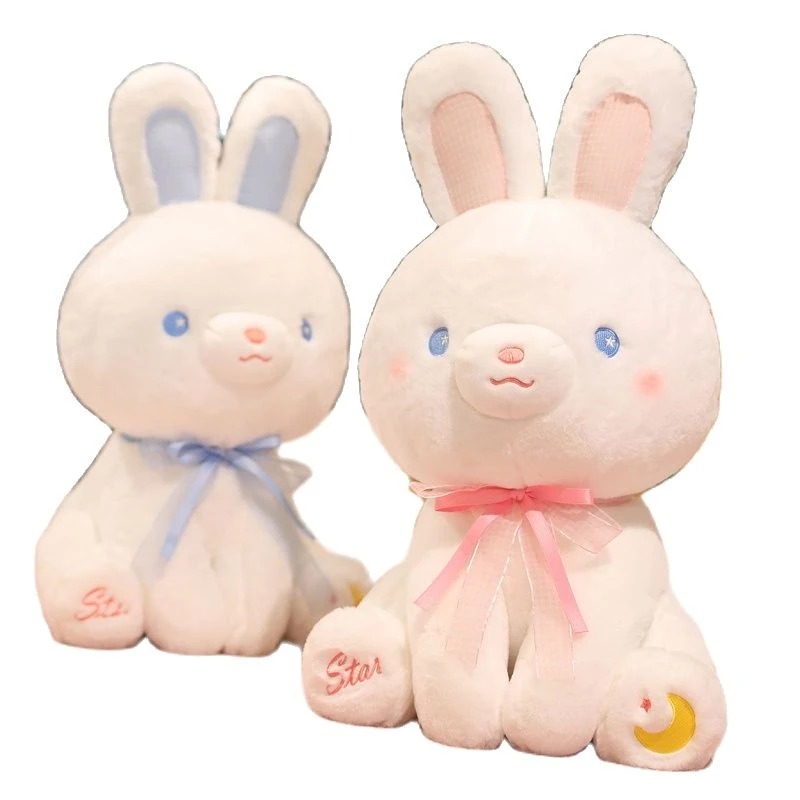 Peluche de conejo de dibujos animados para niños, pajarita de Animal de peluche sentado, muñeco suave de peluche, regalos bonitos, rosa y azul, 35/50cm|Peluches y muñecos de peluche| - AliExpress