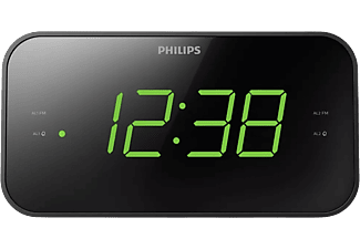 Radio despertador | Phliips TAR3306/12, Sintonización digital FM, Alarma dual, Temporizador, Negro