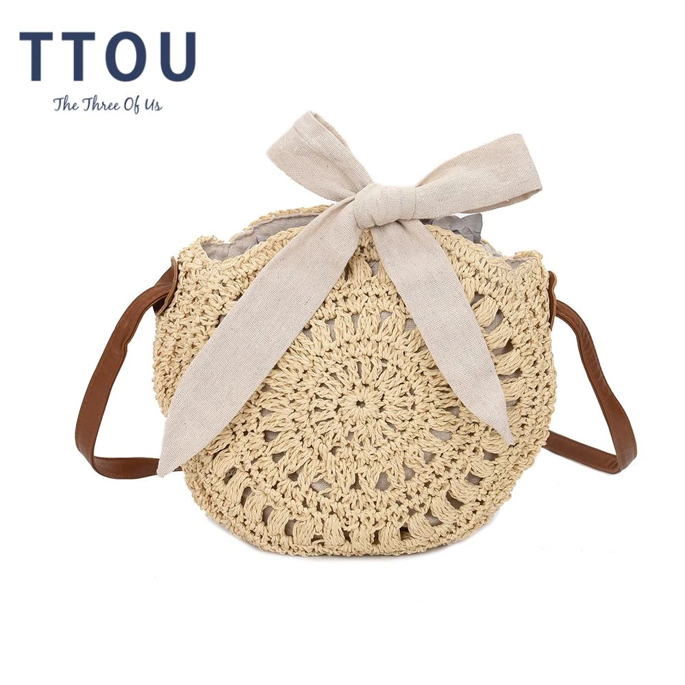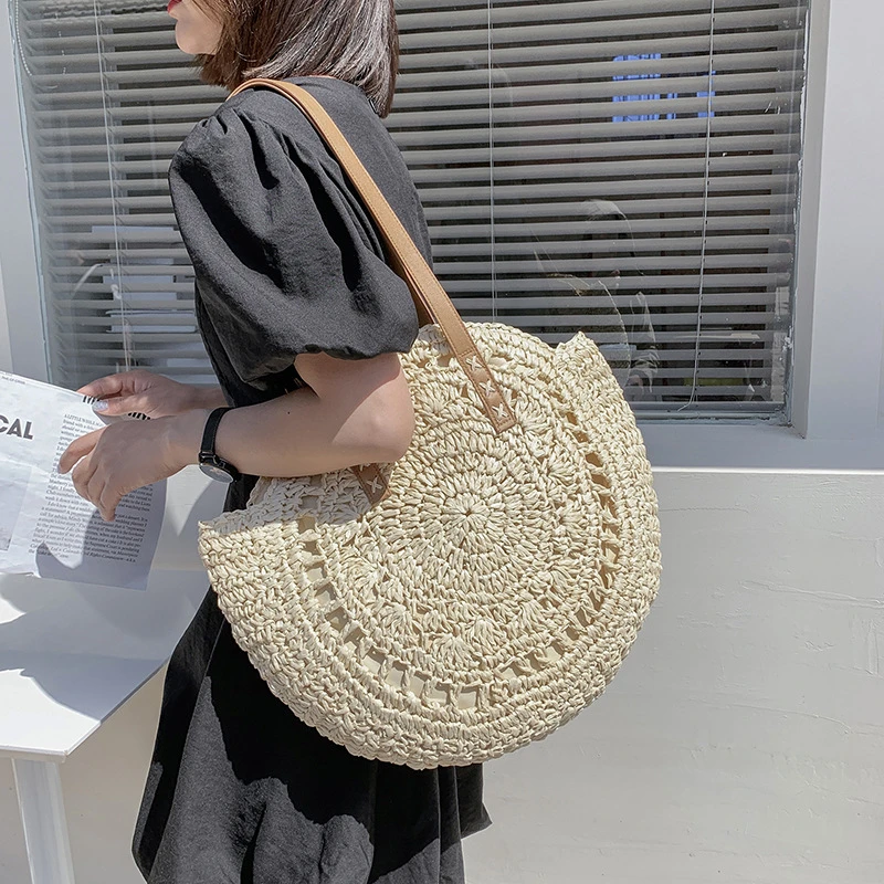 Bolso de playa de paja para mujer, bolsa de rafia tejida a mano de estilo bohemio e informal y con diseño redondo para el verano| | - AliExpress