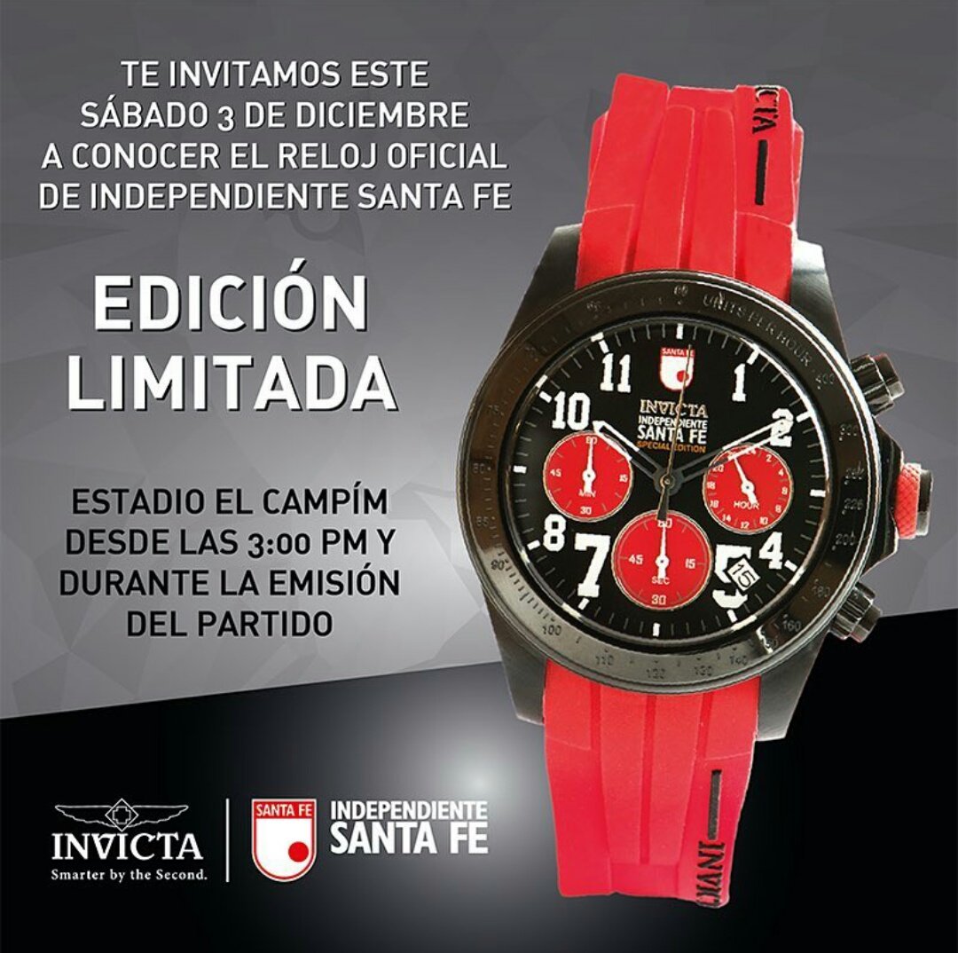 توییتر \\ Independiente Santa Fe در توییتر: «HOY desde las 3pm podrás adquirir en varios puntos dentro y fuera del @NemesioCamacho el reloj #InvictaSantaFe75 https://t.co/29kUVXYxfh»