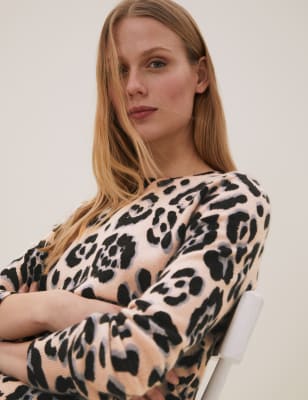 Jersey 100% cashmere con escote cerrado y estampado animal