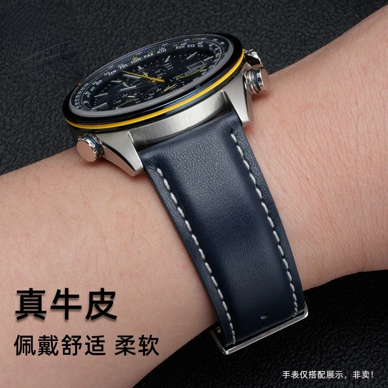 Correa de reloj de cuero de vaca de primera capa para hombre, pulsera de cuero genuino de liberación rápida para Citizen, eco drive, serie Blue Angel, 22, 23mm|Correas de reloj| - AliExpress