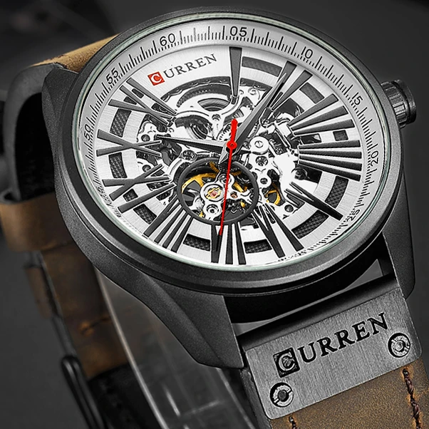 Relojes Curren automáticos de marca de lujo para hombre, reloj mecánico automático, reloj de hombre, correa de cuero, Hombre esqueleto de Reloj de pulsera mecánico|Relojes mecánicos| - AliExpress