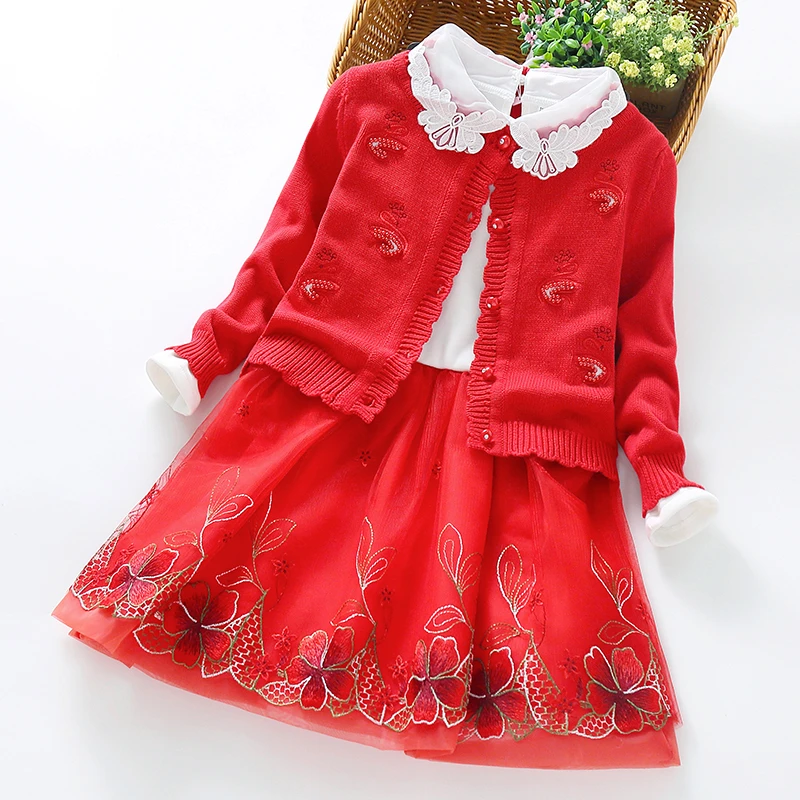 Conjunto de ropa de princesa para niñas, cárdigan, suéter, abrigo y vestido para fiesta de cumpleaños, ropa para niños de 3, 5, 8 y 9 años, otoño e invierno, 2 uds.|set de ropa| - AliExpress
