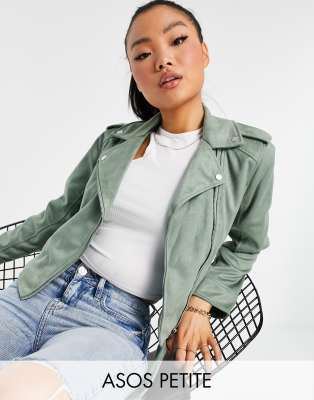 Chaqueta biker verde salvia de antelina de ASOS DESIGN Petite | ASOS