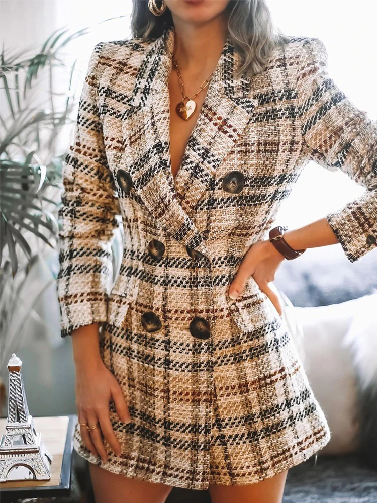 Shein Romwe abrigos y chaquetas para mujer, Blazer con doble botonadura, patrón de cuadros de Tweed, color block, otoño e invierno, 2021| | - AliExpress