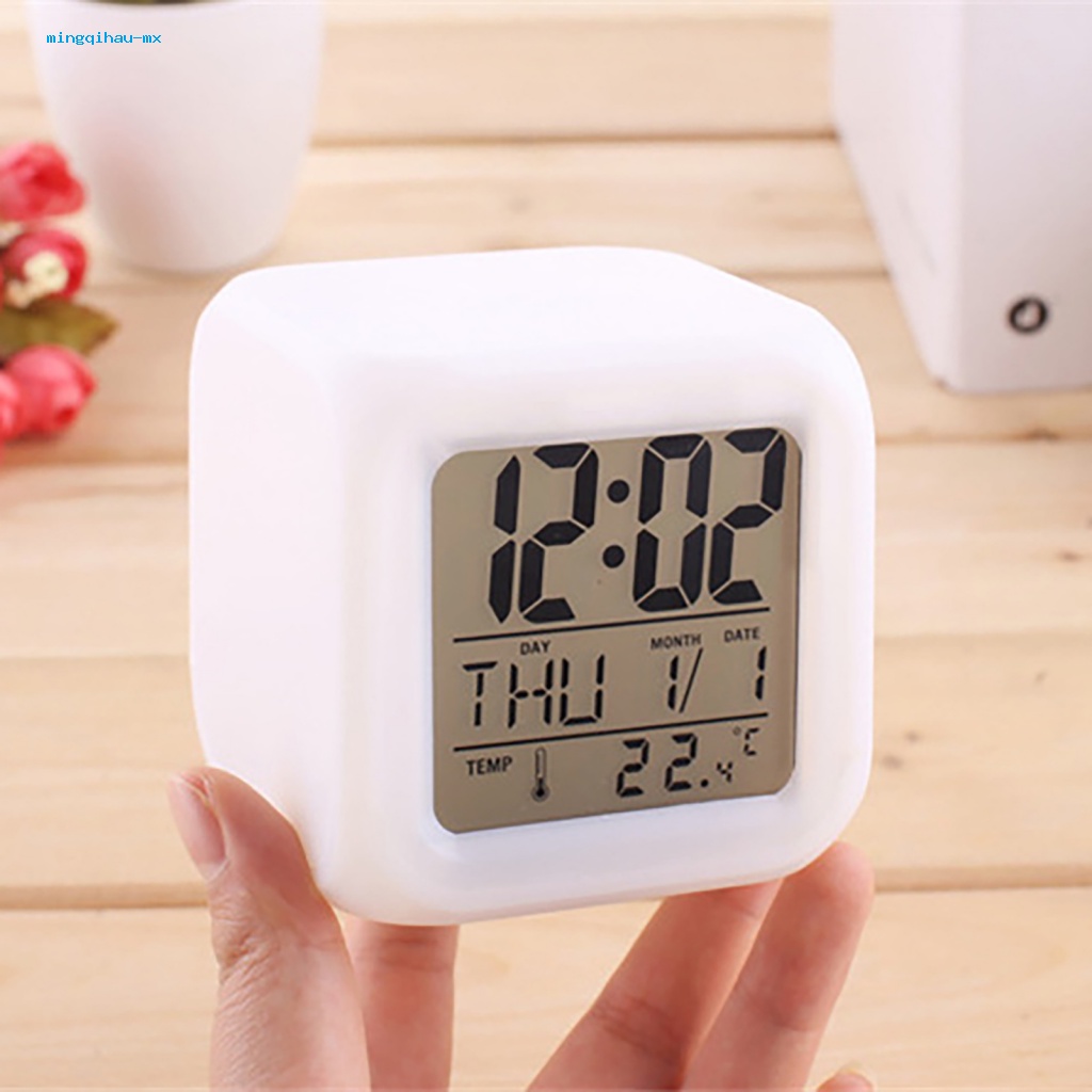 mingqihau] Reloj despertador Digital con pantalla Digital/reloj despertador eléctrico con cambio de Color cuadrado largo tiempo de servicio para oficina | Shopee España