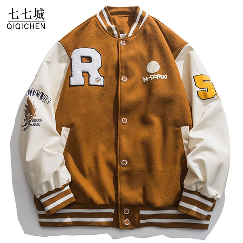 Chaqueta de béisbol de cuero PU con bordado de letras para hombre, cazadora de estilo universitario, holgada, Retro, Unisex, primavera y otoño|Chaquetas| - AliExpress