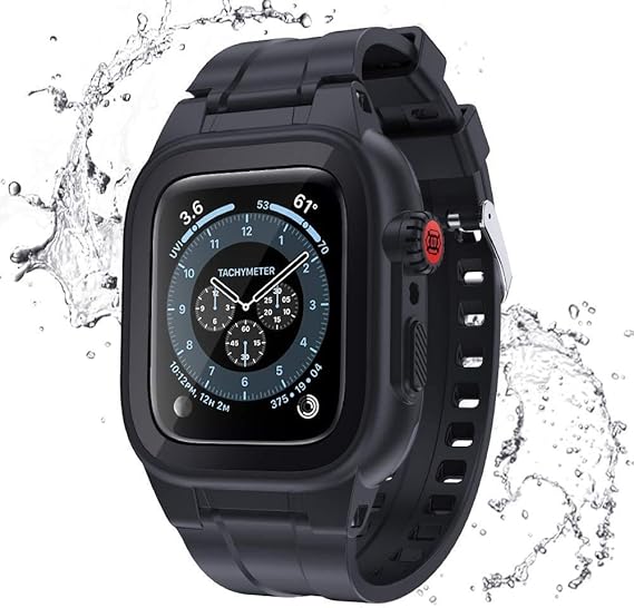 Amazon.com: Funda impermeable para Apple Watch de 1.732 in, serie 4/5/6/SE, IP68, resistente al agua, a los golpes, resistente a los golpes, con correa de silicona para Apple Watch Sport/a prueba de