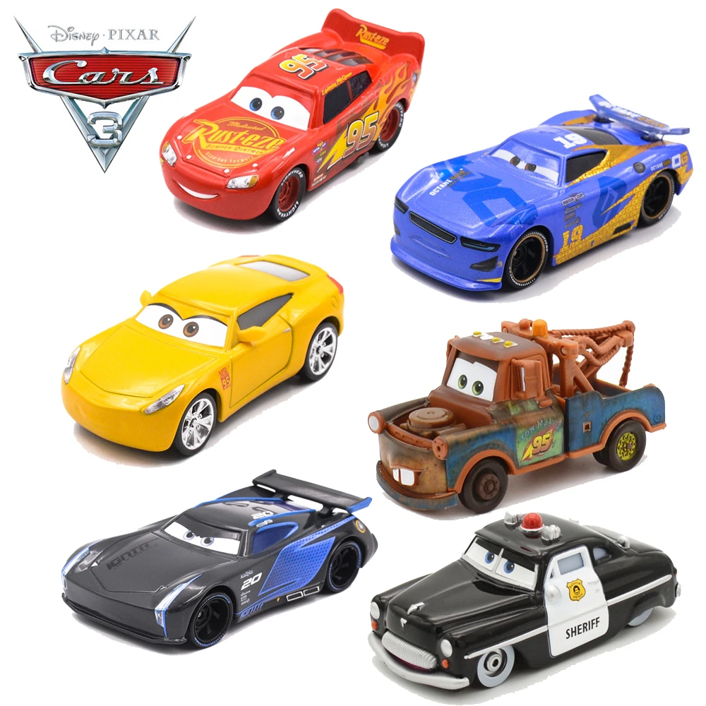 Disney coche Pixar Cars 3 de Metal para niños, juguete de coche de juguete, Rayo McQueen, Jackson, Curz, Daniel Mater, regalo de Navidad, 1:55, 6 unids/set|Juguete fundido a presión y vehículos de
